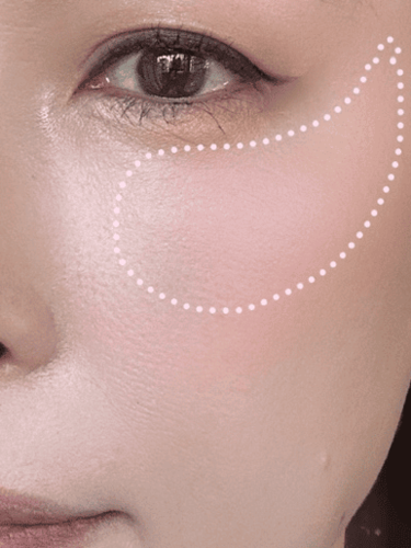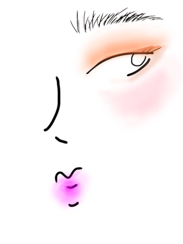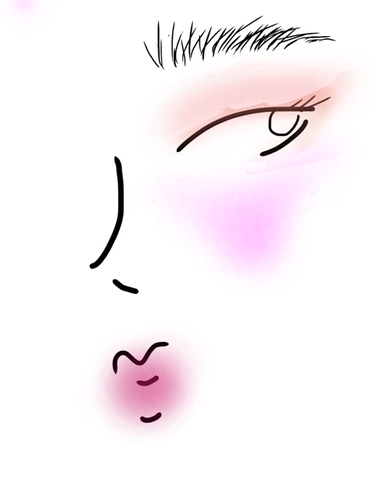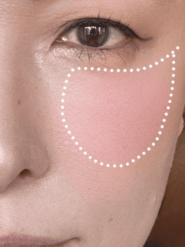 ←ブラウンチークとコーラルチークの入れ方です。頬の中心にはあまり色をのせず、顔の立体感を出すことを重視する感じで入れてみてください。 |
